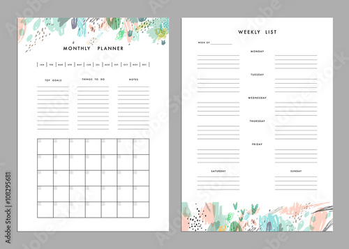 Weekly planner vector template with cute cats and pets accessories. Organizer and schedule with place for notes.
