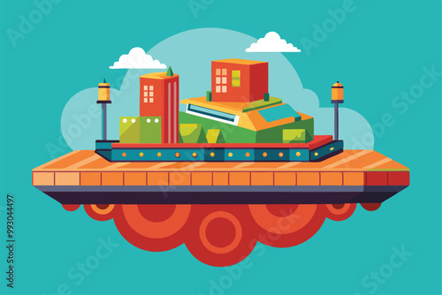 Combine harvester gathers the wheat in the field and automatically loads it in the truck. Farmers gathering the hay and loading it on the tractor. Vector banner in flat design
