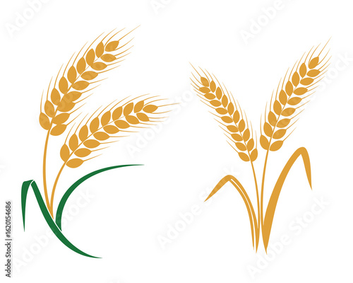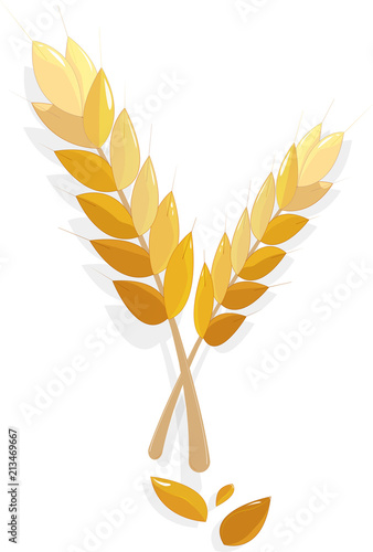 Wheat spikelets falling into milk vector icon. Realistic organic vegetarian food packaging design element isolated on white background