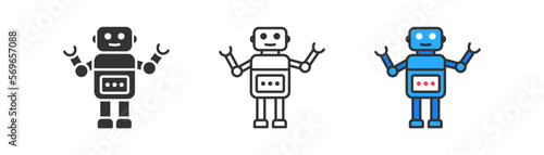Wheeled robot hi-tech character vector icon isolated on white background. AI technology and robotic human assistance