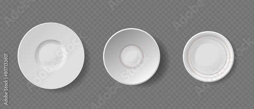 White empty ceramic crockery mockup set, vector top view isolated illustration. Realistic square, round, heart shaped dish, bowl, plate. Porcelain crockery, tableware and kitchen utensils. Kitchenware