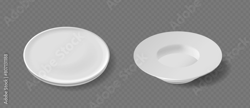 White empty ceramic crockery mockup set, vector top view isolated illustration. Realistic square, round, heart shaped dish, bowl, plate. Porcelain crockery, tableware and kitchen utensils. Kitchenware