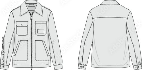 White mens shirt 4 sides mockup set. Vector realistic illustration isolated on white background.