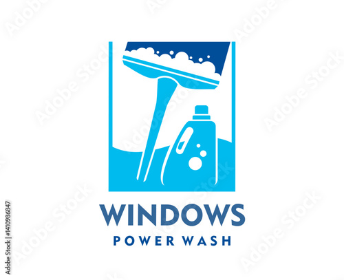 Window cleaner ad. Vector 3d realistic illustration of handy plastic trigger spray bottle and clean window. Window cleaning detergent promo poster design template.