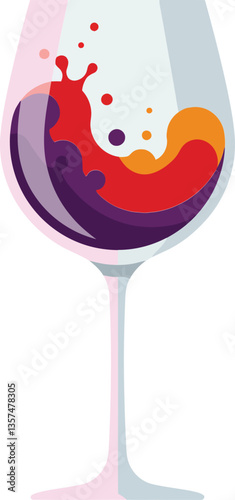 Wineglass with wine splash, vector illustration in paper art style. Red, pink, white wine in glasses for restaurant menu, wine bar logo, card, poster, banner, flyer, label.