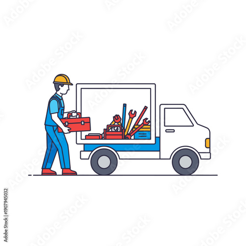 Wine grape harvesting, the first step in winemaking process, flat vector illustration. Vineyard, farmer or gardener with basket, tractor transporting grapes to the winery.
