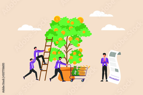 Male and female characters picking grapes from vineyard, vector illustration. Harvesting, first step of wine making process. Wine production concept for web banner, website page etc.