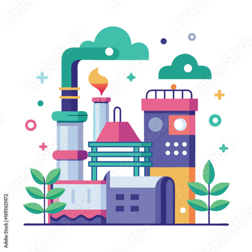 Wine production process concept vector illustration. Winery factory, people harvest grape and make wine. Winemaking technology.