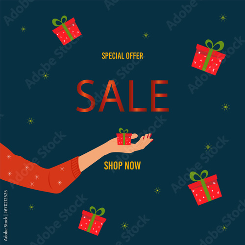 White open box with Win word, golden serpentine and confetti explosion, vector isolated illustration. Winner gift box for banner, poster etc.