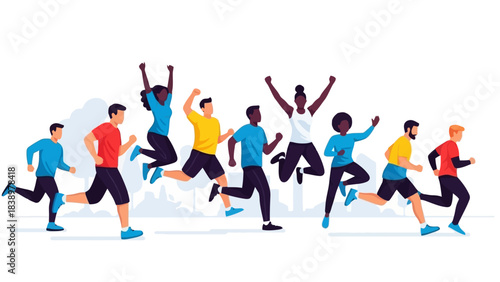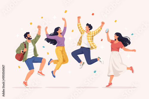 Winners team vector. Happy business employee receive gold trophy goblet for first prize. Champion award ceremony. Teamwork and success concept