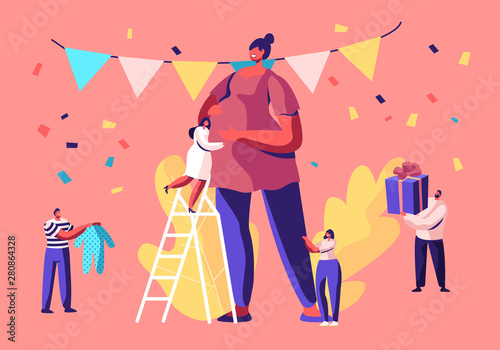 Huge winner medal with ribbon and happy tiny business people celebrating, vector illustration. Winner people team success concept for web banner, website page etc.