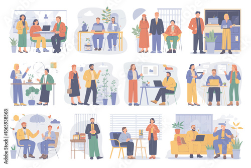 Winter hiking gear circle composition, flat vector illustration. Mountain travel, winter trekking equipment. Warm clothes, backpack, compass, tent, skis, sleeping bag, hiking shoes, campfire tools etc