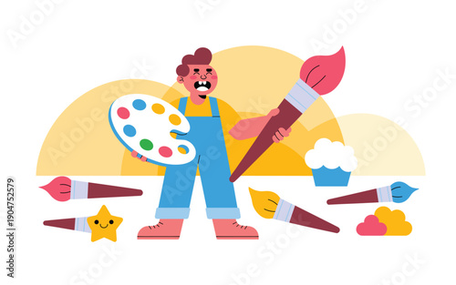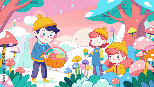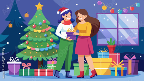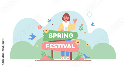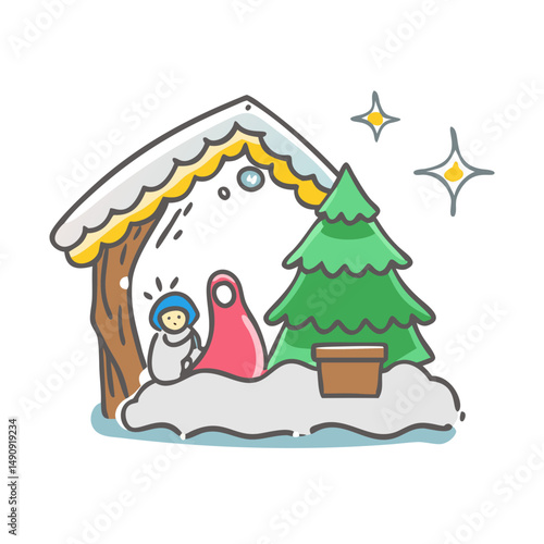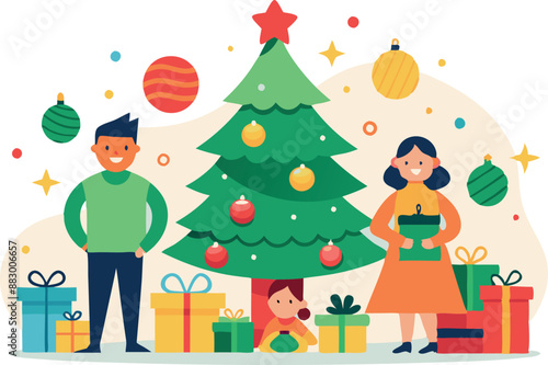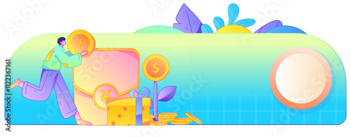 Winter holiday season vector concept illustration. Christmas sale, woman with shopping bags buy gifts. Man enjoys first winter snow. Web site design template.