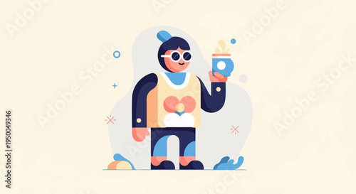Happy micro male characters making huge snowman, vector illustration. Winter season fun, outdoor winter activities concept for web banner, website page etc.
