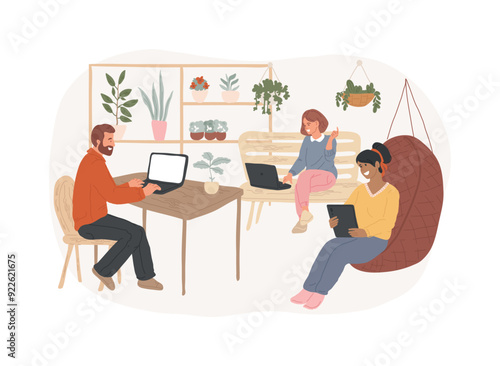Man and woman communicating texting messages using laptop computer, mobile phone devices and wifi access. Free public WiFi hotspot zone, wireless connection concept for web banner, website page etc.