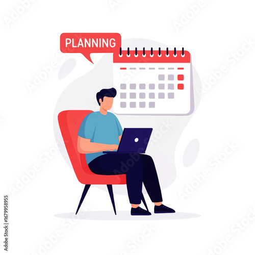 Man working on laptop sitting on bench with Hi message bubble, vector flat isolated illustration. Free public WiFi hotspot zone, wireless networking technology concept for web banner, website page etc