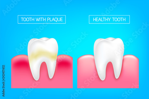 Wisdom teeth problems poster design template, vector realistic illustration. Impacted wisdom tooth that causes damage to other tooth. Dentistry, dental surgery concept.
