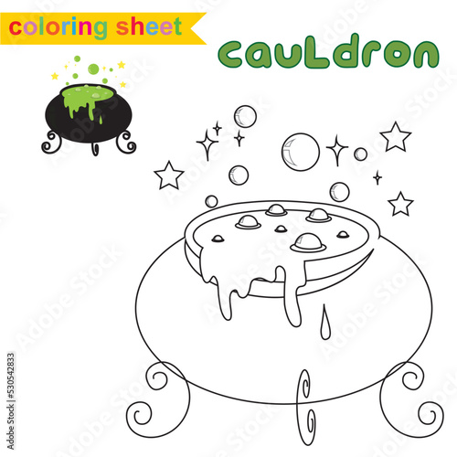 Witch cauldron pot with potion vector. Halloween magic witchcraft soup brewing illustration. Boiling poison isolated on white background