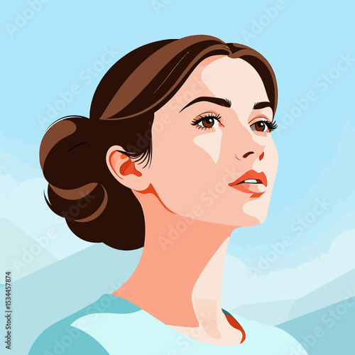 Woman choosing haircare cosmetics vector icon isolated on white background
