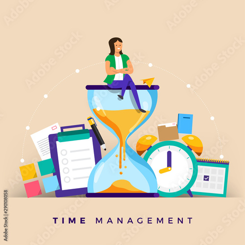 Woman clean home and remove dust. Man check todo list. Concept illustration. Vector web site design template.