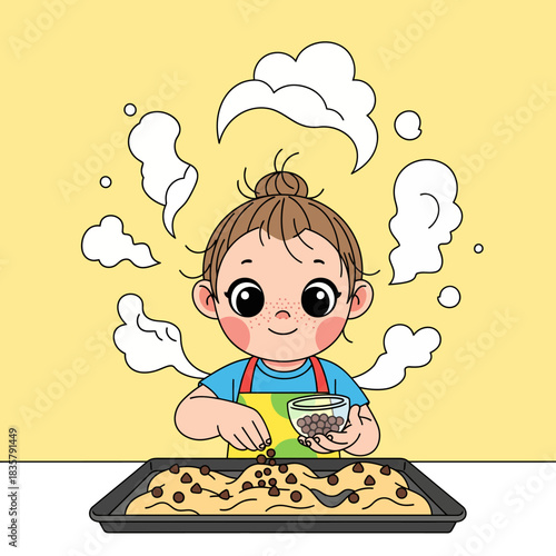 Woman cooking pizza at home. Vector illustration in retro comic pop art style.