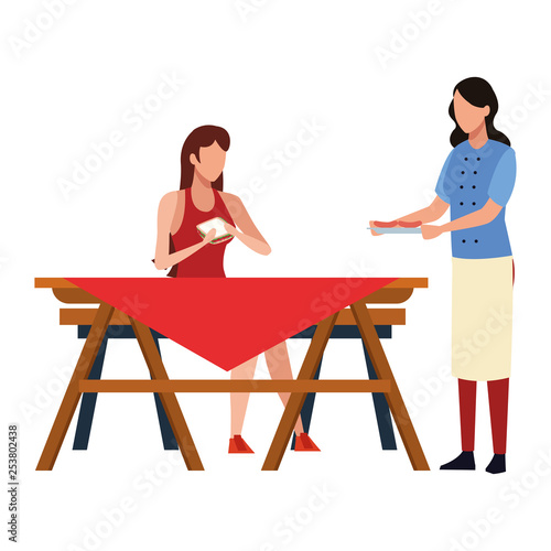 Woman eating sushi at home vector icon isolated on white background.