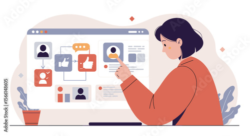 Woman in depression and crying after reading comments and hate messages in her mobile phone. Online cyberbullying concept vector poster. Cyber harassment, hate and abuse messages in social media.