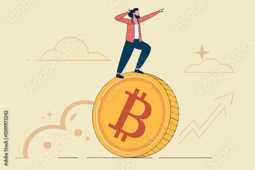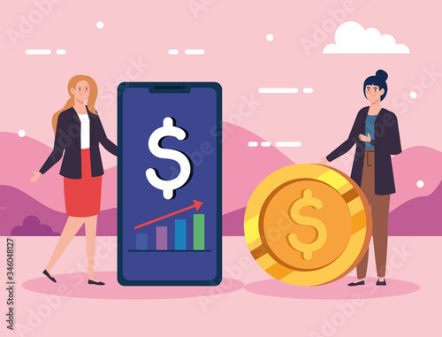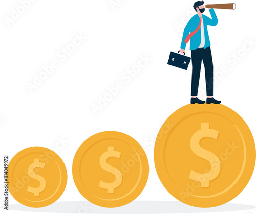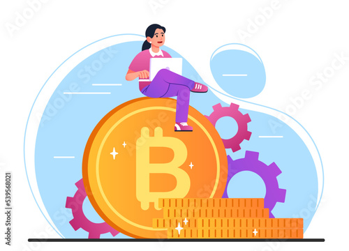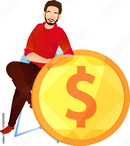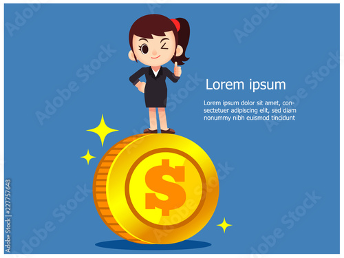 Woman investor holding dollar gold coin vector icon isolated on white background. People miner character. Business and financial growth