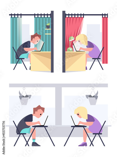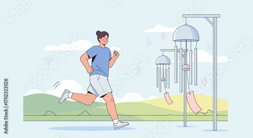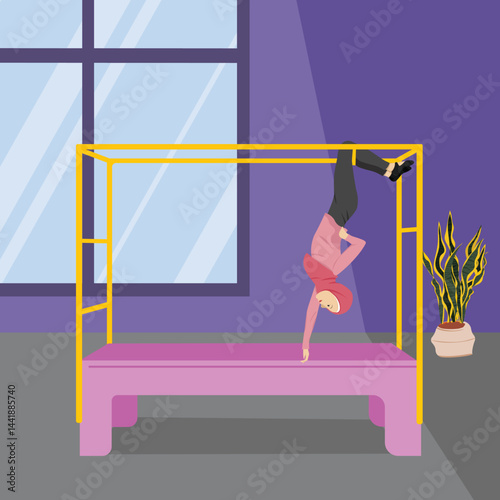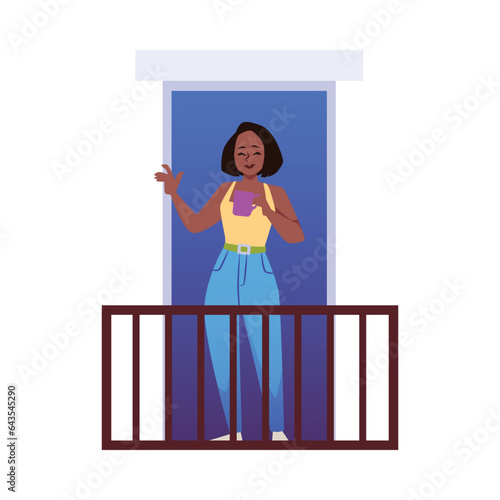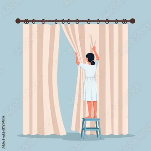 Woman ironing clothes vector illustration. Housewife uses the home appliance.