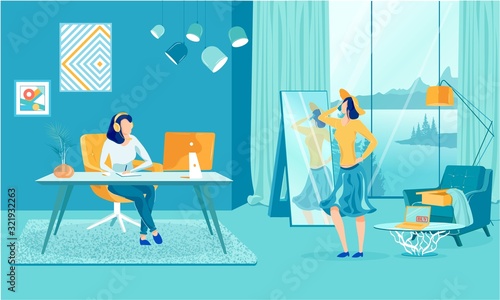 Woman ironing newborn baby clothes. Baby care concept illustration. Vector web site design template. Diaper bag with milk bottles.
