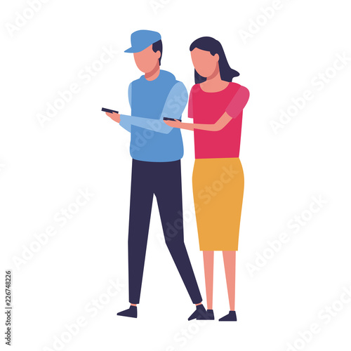 Woman looking through spyglass vector icon isolated on white background