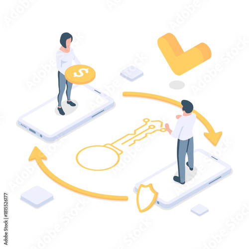 Business woman moving king chess piece on chessboard, flat vector isometric illustration. Business strategy, leadership concept.