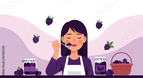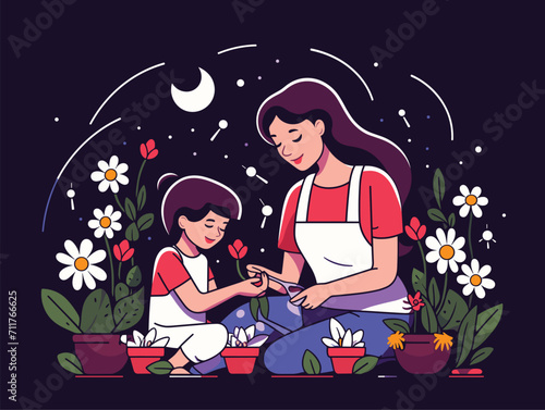 Woman night time routine that helps to sleep better, vector flat illustration. Yoga and meditation, cup of herbal tea, home beauty skincare routine. Sleep care evening habits concept.