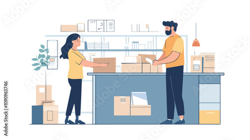 Woman prepares to move and packs books to cardboard box at home. House relocation concept illustration. Vector web site design template. Box with books and stuff. Moving service.