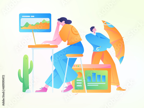 Woman put her hand on crystal ball and reads mystic book. Astrology and zodiac signs vector concept illustration. Book with constellation and zodiac symbols. Web site design template.