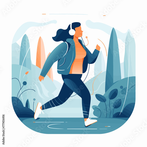 Woman running along the street with shopping bags and credit card in hands, flat vector illustration. Online shopping addiction concept.