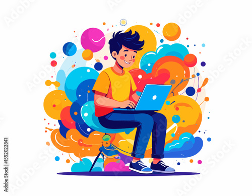 Woman shopping online from her chair at home. Concept illustration. Vector web site design template.