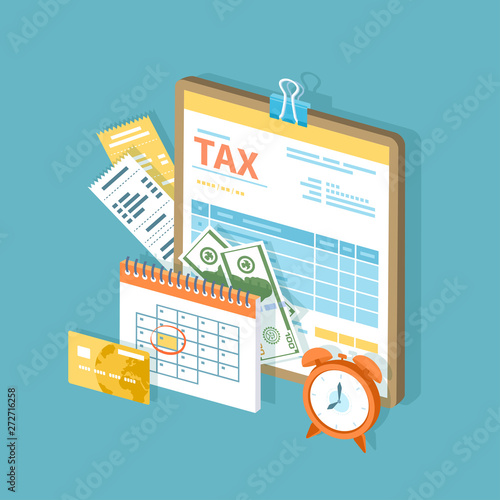 Woman sitting in chair and working with laptop from home. Laptop with financial charts and alarm clock on a desk. Home office and business concept illustration. Vector web site design template.