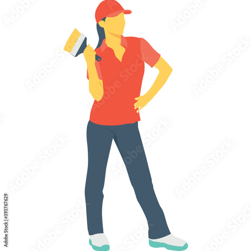 Woman speak in megaphone vector. Female person standing with loudspeaker icon. Young business lady with bullhorn isolated on white background