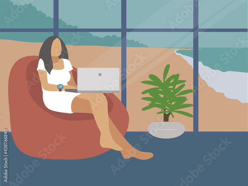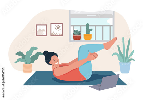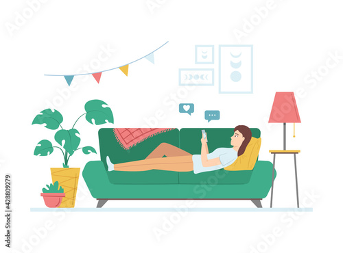 Woman suffering from low temperature at home sitting on bedside in bedroom trembling and shaking body under blanket plaid scene vector illustration