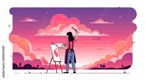 Young woman in wetsuit swim on stand up paddle board. SUP surfing. Active lifestyle. Vector illustration in flat design