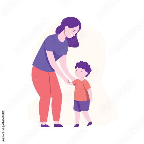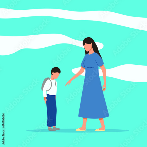Conversation with children concept. Flat cartoon woman teacher and little preschoolers in dispute, female talking to kids after quarrel vector illustration isolated on white background