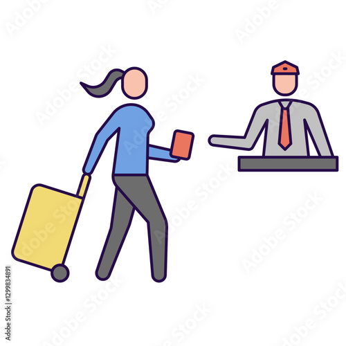 Woman traveler with luggage bag back view vector icon isolated on white background. Viral pandemic concept.