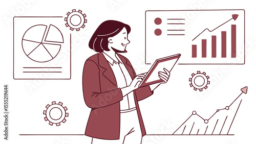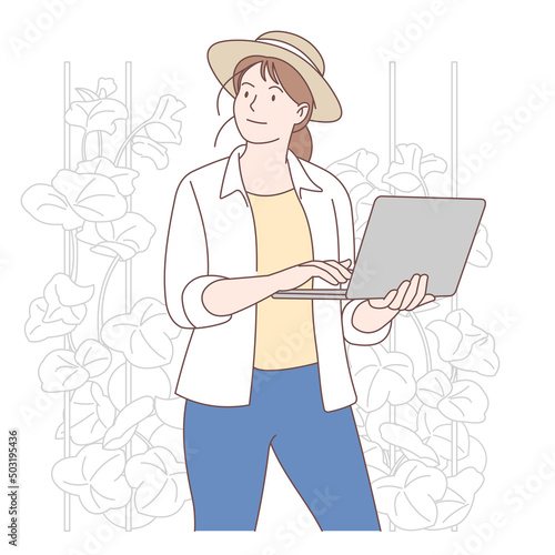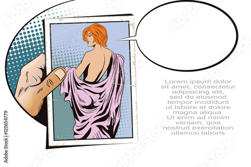Woman trying on new clothes front of mirror vector icon isolated on white background