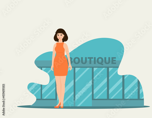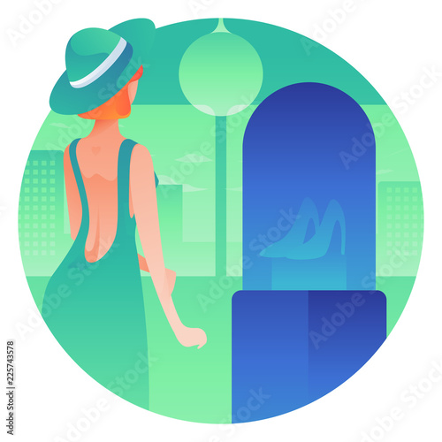 Woman uses chalk to draw sun on asphalt road. Woman enjoying her beach vacation and reading book. Weekend and relax time concept illustration. Vector web site design template.