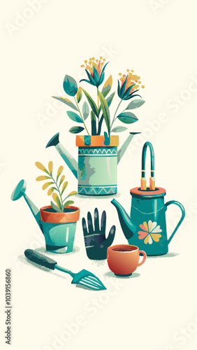 Woman watering plants in home garden. House plants concept illustration. Vector web site design template. Potted flowers, houseplants, florist hobby.