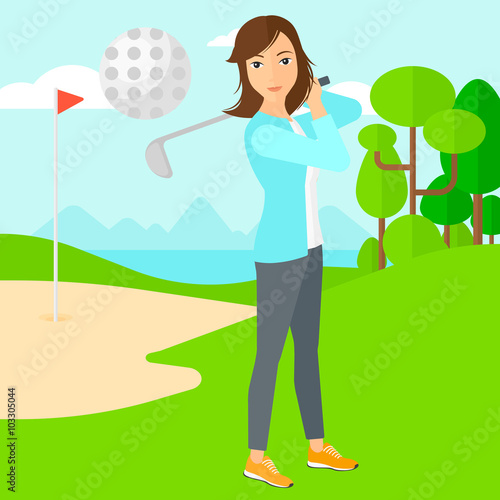 Vector illustration of woman in sunglasses holding coconut cocktail. Beach holidays flat style design element.