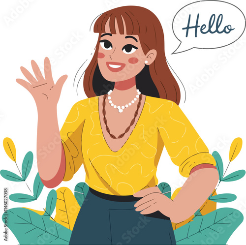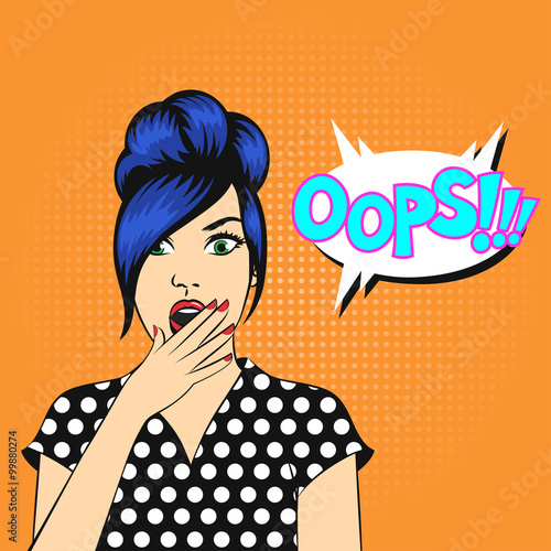 Woman with speech bubble pointing finger to the right direction. Vector illustration in retro comic pop art style. Girl showing the way.