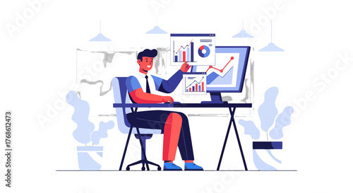 Woman working on laptop sitting at cafe table vector illustration. Freelance business people informal workplace. Remote job, distance work, online occupation