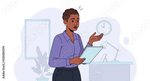 Woman work on laptop retro comic pop art vector illustration. Businesswoman in office. Job is done concept.